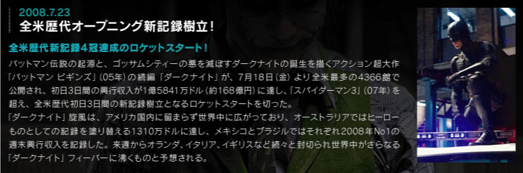 全米歴代オープニング新記録樹立!バットマン ダークナイト
