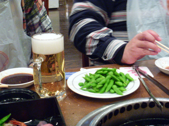 突き出しに枝豆も出てくるしビールもぐいぐい進みます