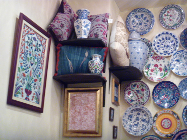 入って正面の壁には一面に陶器のお皿が
