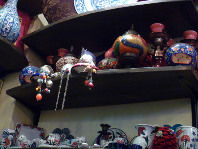 シーシャ(水タバコ)道具や様々な雑貨が配置されていて