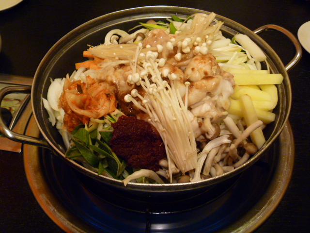かなり色々な具が入っていてホルモン、キノコ、トッポギ